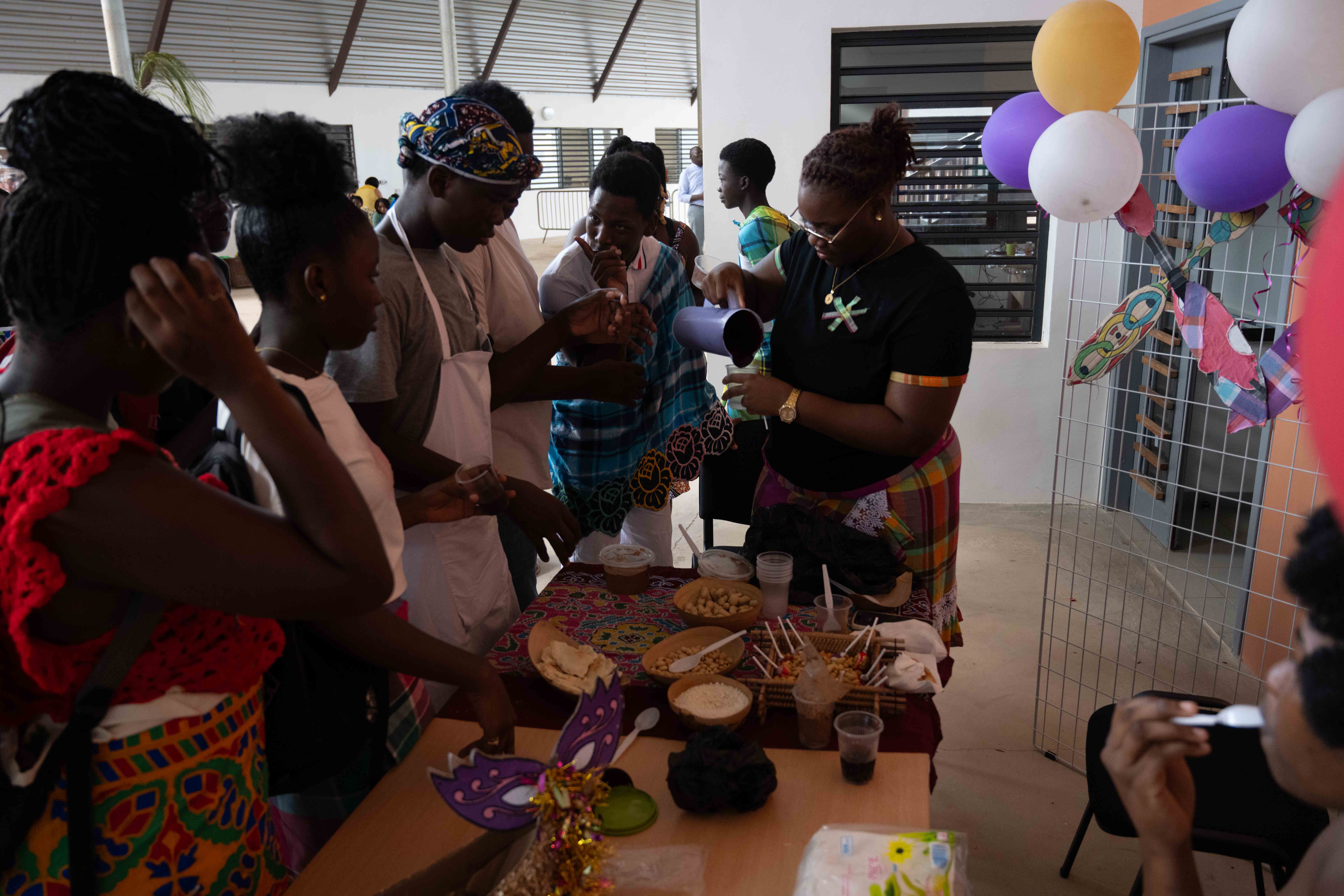 La matinée a débuté par une dégustation de spécialités locales : chocolat créole accompagné de pain natté au beurre et de wassai. Ce moment gourmand a permis aux élèves et aux personnels de (re)découvrir des saveurs traditionnelles et de valoriser le patrimoine culinaire guyanais.